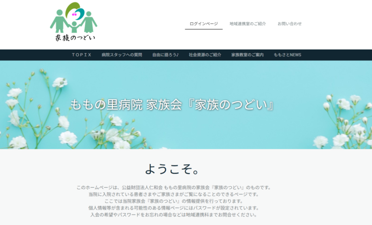 当院に入院中の患者さまのご家族さまに向けて、家族会『特設ホームページ』を令和3年7月に作成してあります!